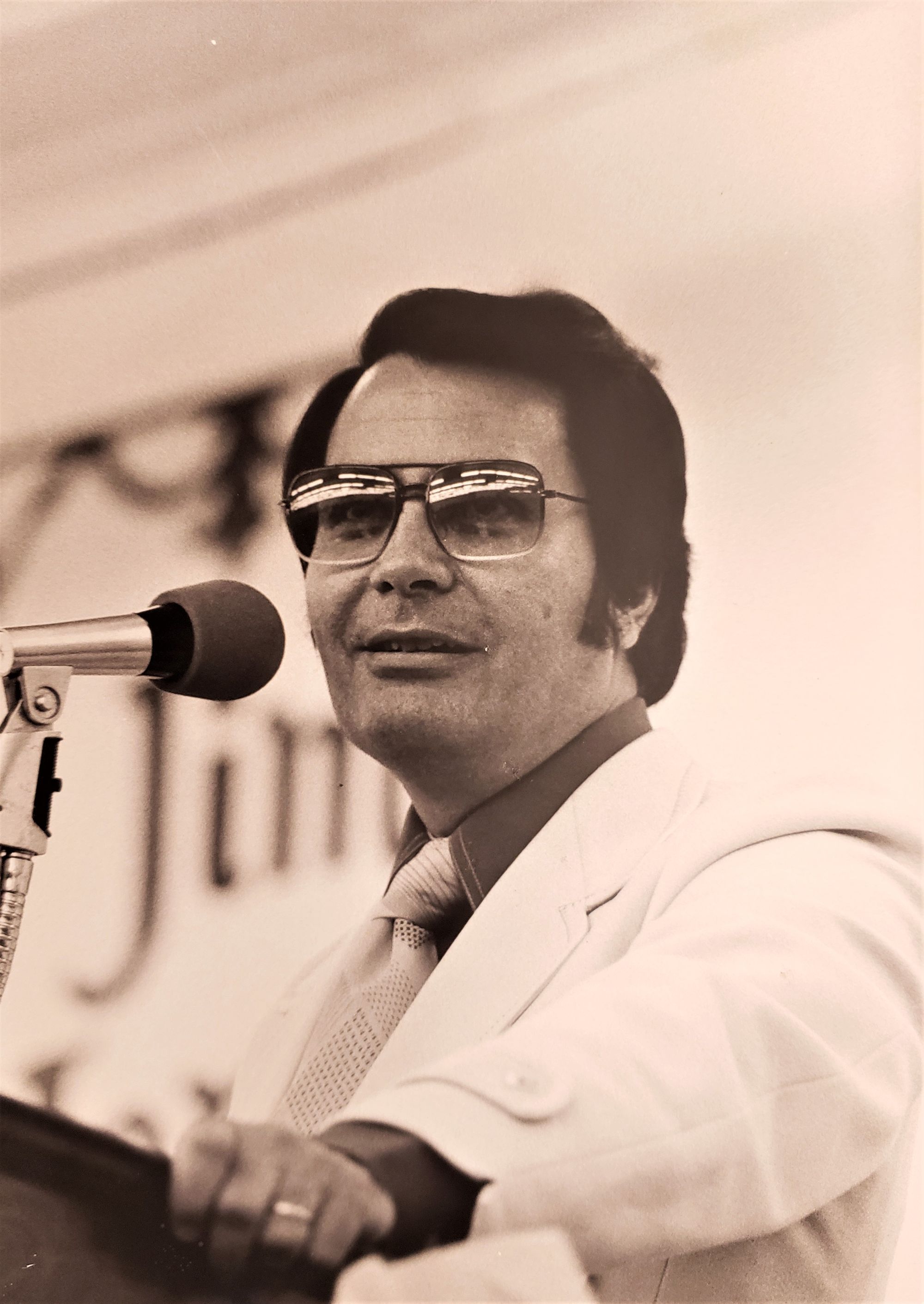 In the last photo, we see Reverend Jim looking a bit more low-key, prior to donning his leisure suits and belting out those famous sermonic tirades, the power of which led hundreds to a horrifying end. Interestingly, in this final image, we see him reaching for those sunglasses. Jones lived from 1931 to 1978.