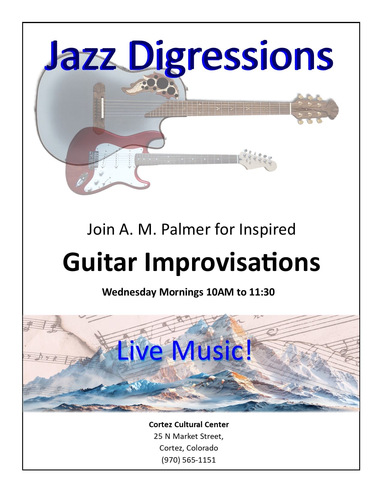 I hope this message finds you well, enjoying the color of my favorite season, awaiting the arrival of winter. I spent most of September working on music projects and playing guitar at the Cortez Cultural Center. I also played a gig at the Turquoise Raven Art Gallery and had an opportunity to meet some wonderful folks, artists and patrons alike. Now, we can look forward to an exciting winter!