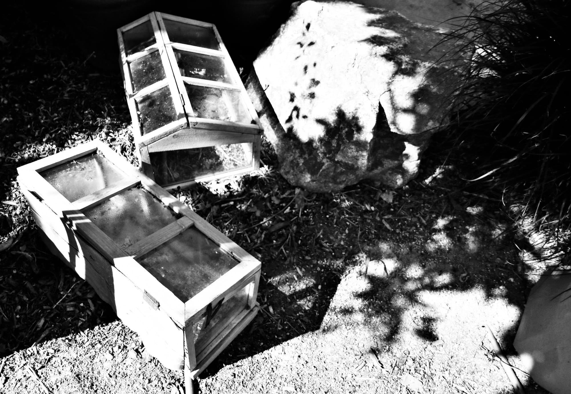 While living in a townhouse in Eastlake, I had a neighbor who cultivated plants and left all manner of ornaments in her wake. She was a gardener but also an all-around housewife who reveled in cooking gourmet dinners, shopping for furniture, and hiding Easter eggs at the appropriate season. In the midst of a spring project, she left garden boxes in disarray, a perfect photo opportunity which I appreciated. Often, subjects present themselves in ideal form, but only for a fleeting moment.