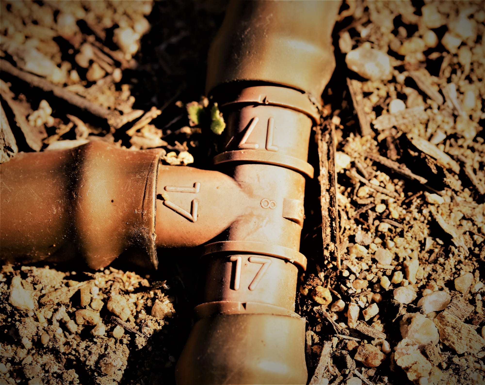 Water must sustain the life of a garden in direct fashion, not only to hydrate the ground but also to cleanse leaves of pollution and dust. Sometimes irrigation methods are no less interesting than the gardener's plants, especially for macrophotography. The intersection of aesthetics and infrastructure provides us with countless photo opportunities. And there is even more to consider as we investigate this subject. In fact, I rather like this theme of strange intersections in cultivated spaces. Perhaps I'll write something with this topic in mind. But I digress.