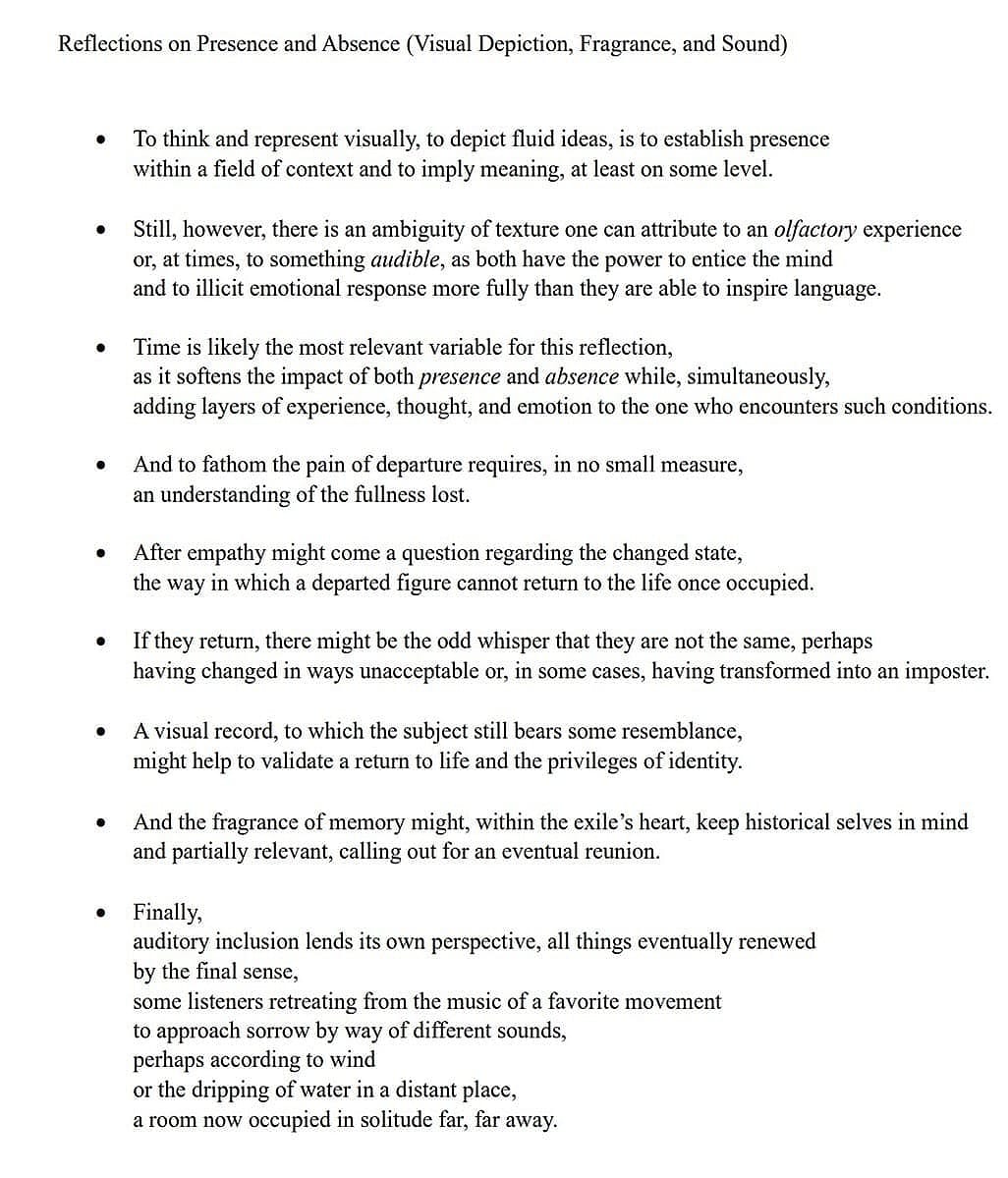 Reflections on Presence and Absence (Visual Depiction, Fragrance, and Sound)