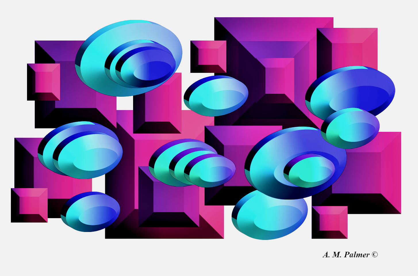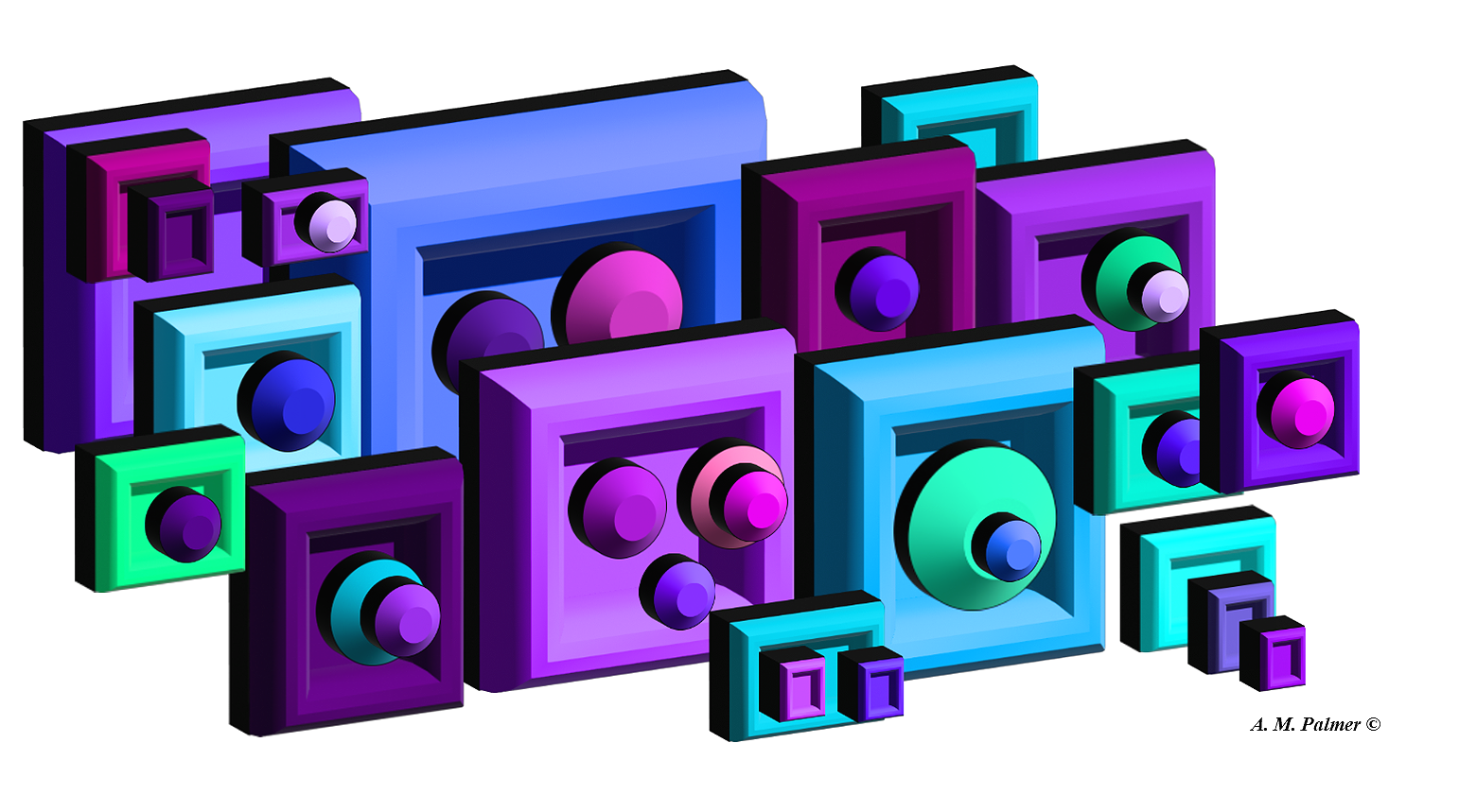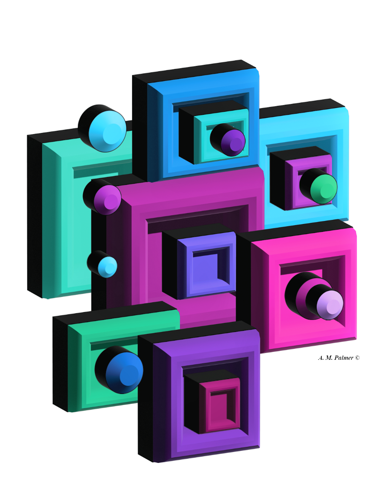 As for my inspiration, I have studied a number of midcentury modern artists and designers informally, for a number of years, and experimented with digital as well as analog media.