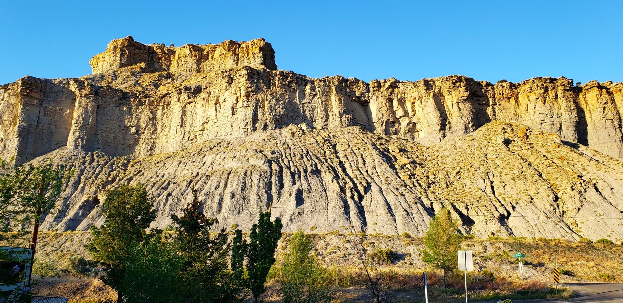 For many, art and nature lend meaning to life, adding beauty to the moments we experience. To my mind, spilling our lunch in a café, or even strolling the streets of a new city with wonder, will banish any stoic sense of futility, as will the appreciation of geologic wonders. In the evenings, I enjoy sitting outside to view this glorious mountain, the name of which no one seems to know. On the other side of the Blue Cut RV Park, my temporary home, the brown waters of Price River flow with spring melt and feed nearby canals.